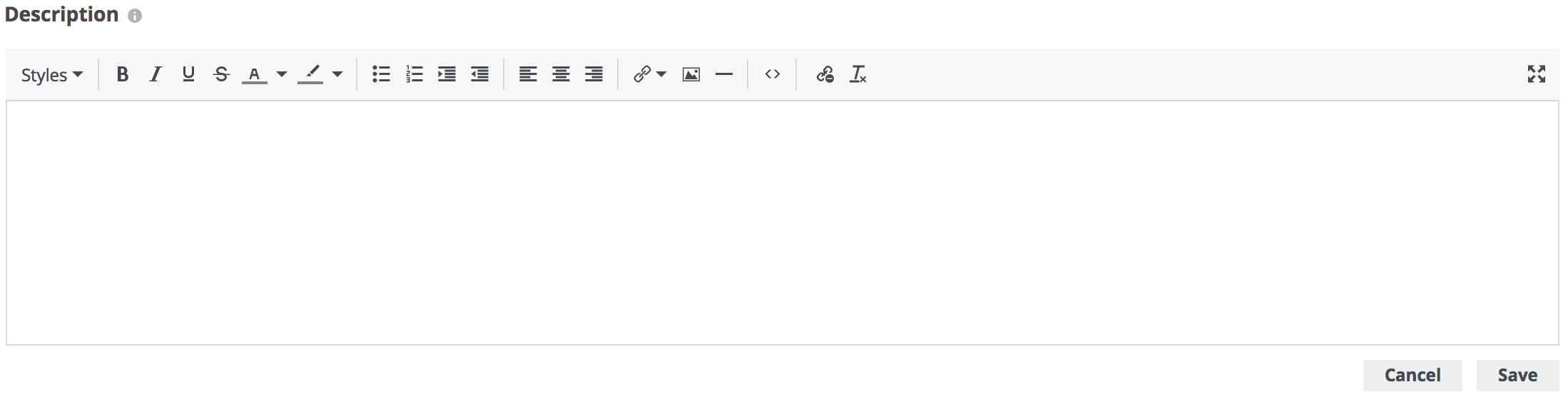 Text editors in Collibra allow you to enter, edit, and format text. The following table lists the types of text editors and where they are available.