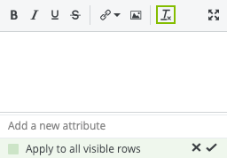 The table text editor allows you to edit and format text in asset tables. The toolbar contains all the editing options of the mini text editor toolbar, in addition to a clear formatting option.