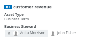 Tiles can show the responsibilities of a resource per role. If you enabled inherited responsibilities in Collibra Console, you can see the inherited responsibilities. Inherited responsibilities have a gray background and direct responsibilities have a white background.