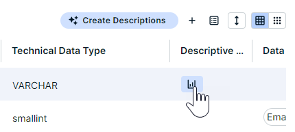 - In the Columns section in a Table asset, you can open the descriptive statistics by clicking the chart icon. The information opens in a dialog box.