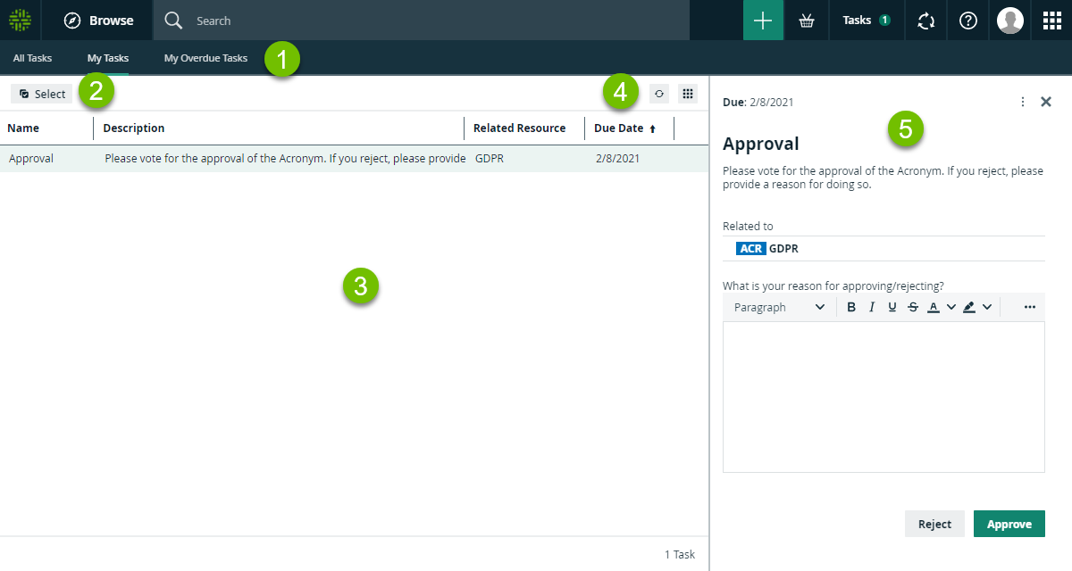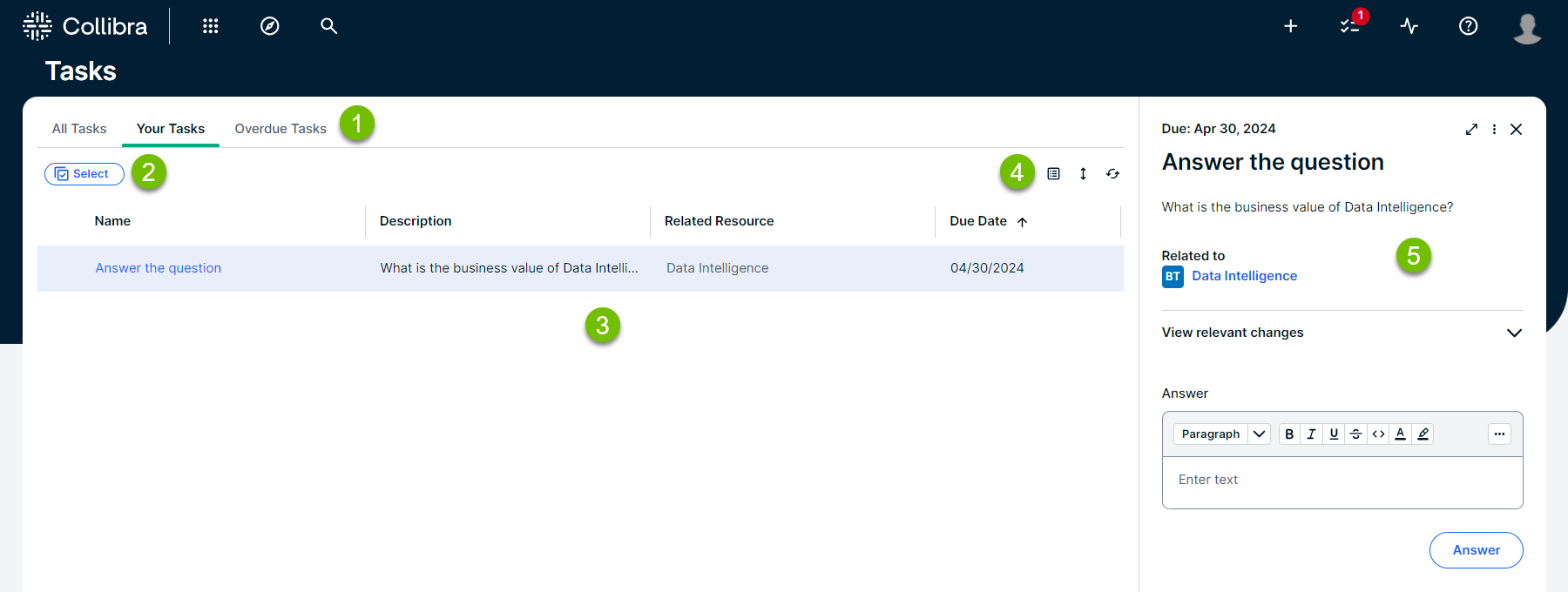 - Understand the workflow context: If you are unsure why a task was assigned to you or what its purpose is, review the workflow description or consult your Collibra administrator.
